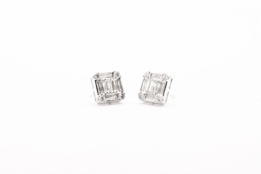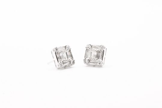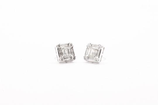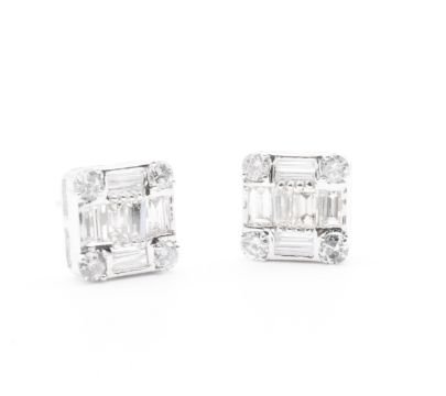 Pie Cut Round Brilliant & Baguette Cut Natural Diamond Earrings 4.00 Carat - SI Clarity